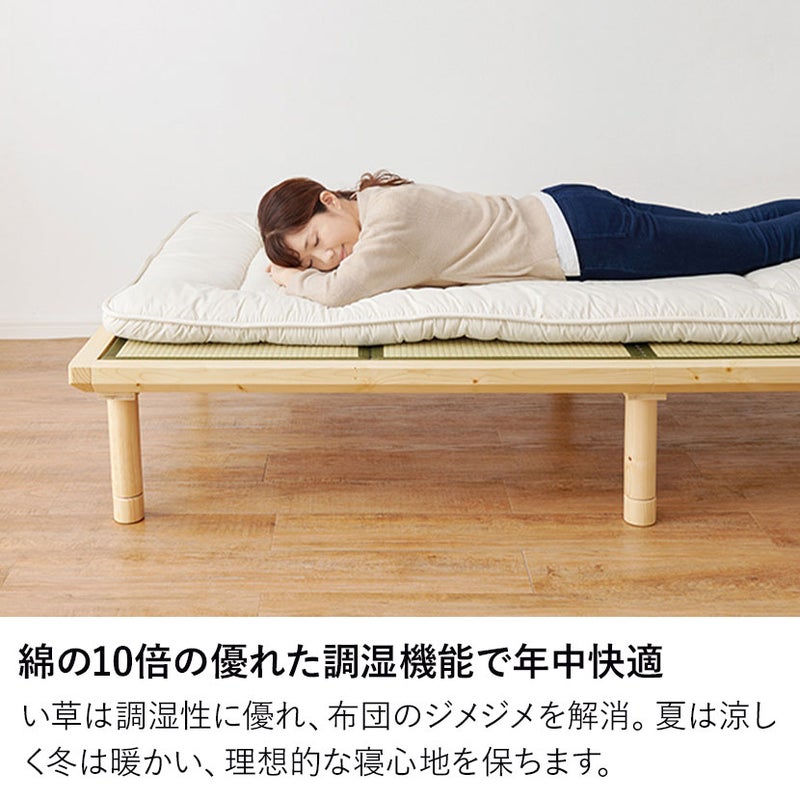 マットレスには、厳選された天然のい草をふんだんに使用しており、自然本来の質感を楽しめます。