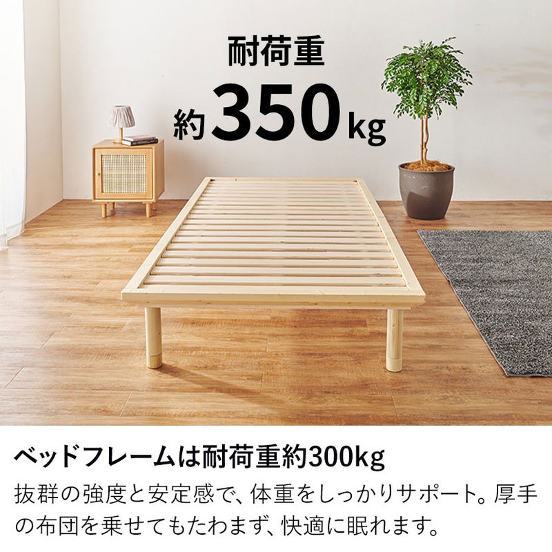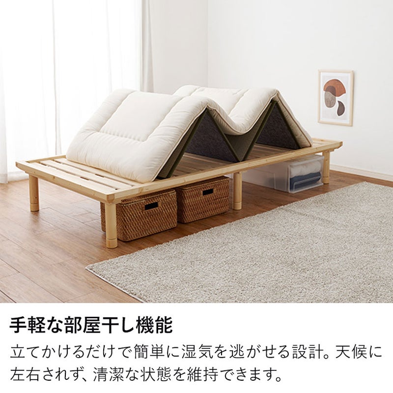体格の良い方や、厚みのある敷布団を乗せて使用する場合でも、フレームがしっかりと体重を支え、快適な睡眠をサポートします。