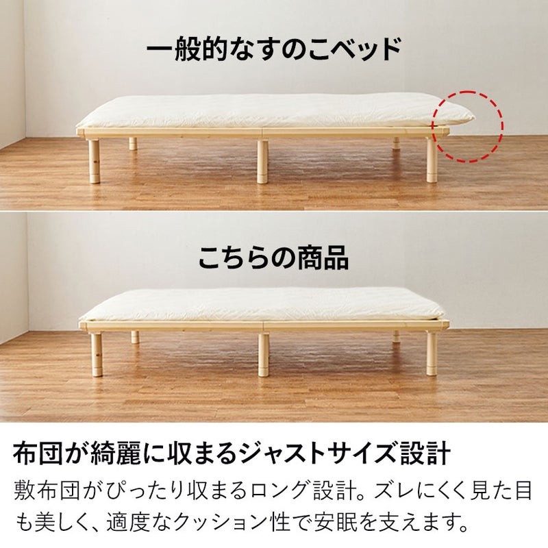 フレームは、一般的なサイズの敷布団がぴったりと収まるように、ロングサイズに設計。
