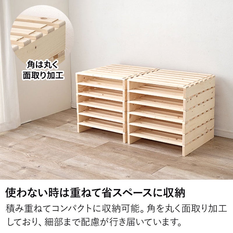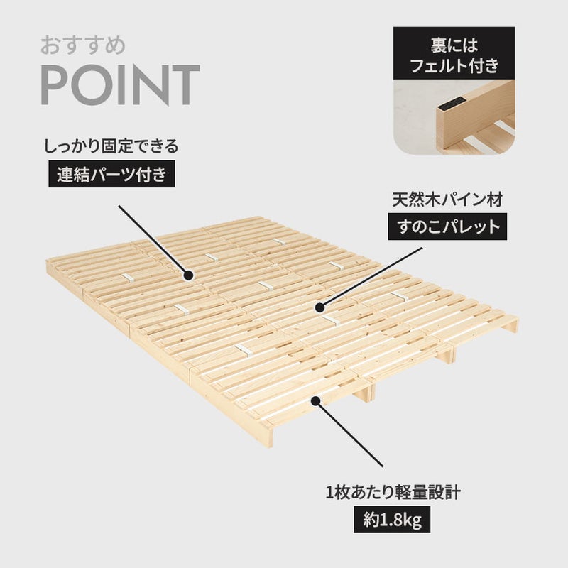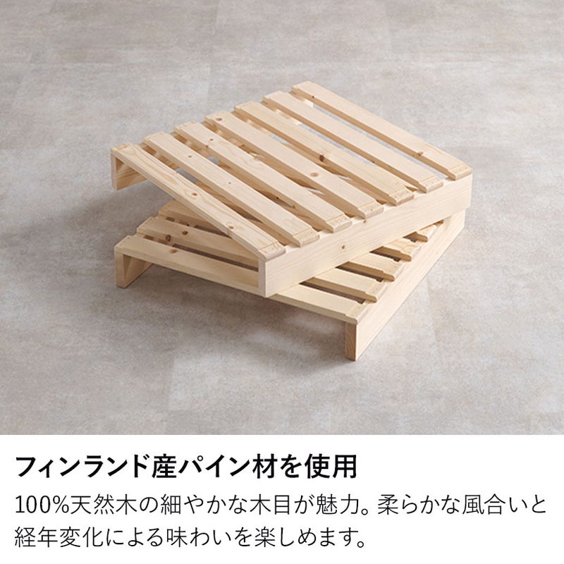 パレットそのものが「すのこ」の構造になっているため、マットレスや布団の下の湿気を効率よく逃がします。