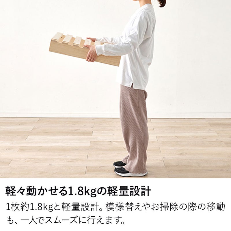 1枚あたりの重量は約1.8kgと非常に軽く、女性や力の弱い方でも無理なく持ち運びや移動が可能です。