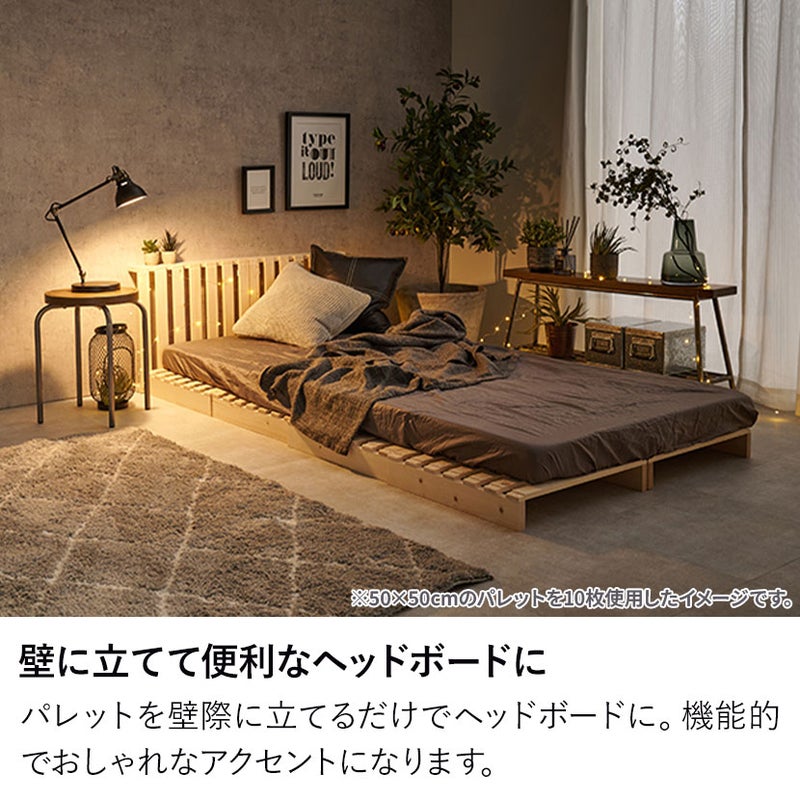 パレットを壁際に立てて設置すれば、おしゃれで機能的なヘッドボードとして活用することも可能です。