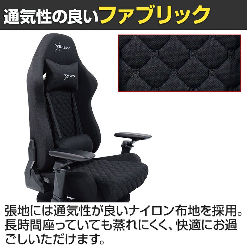 ゲーミング座椅子 E-WIN ゲーミングチェア ファブリック 布 通気性 リクライニング機能 3Dアームレスト ハイバック仕様 椅子 座椅子