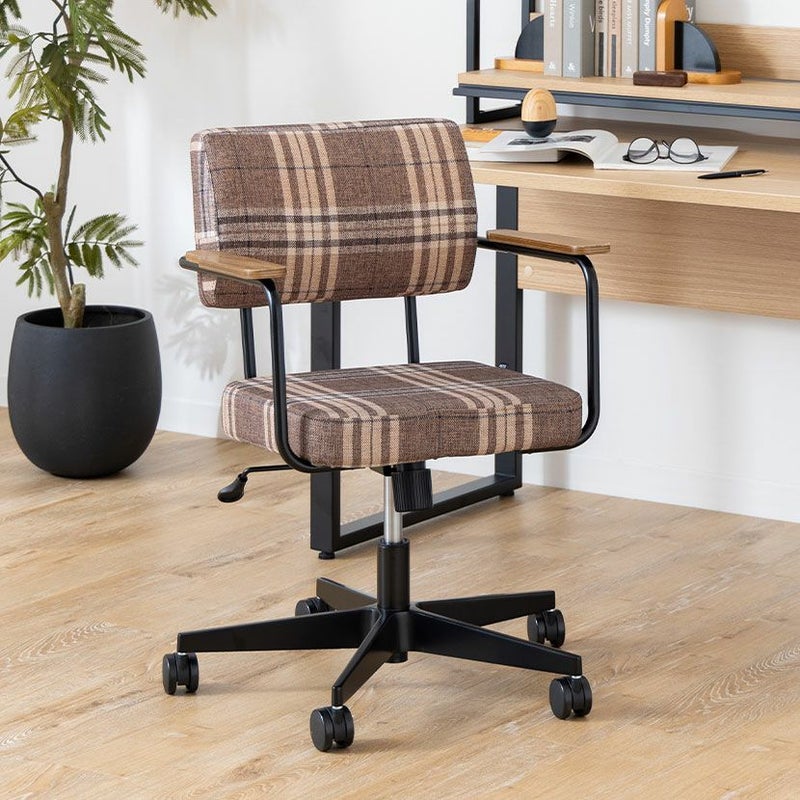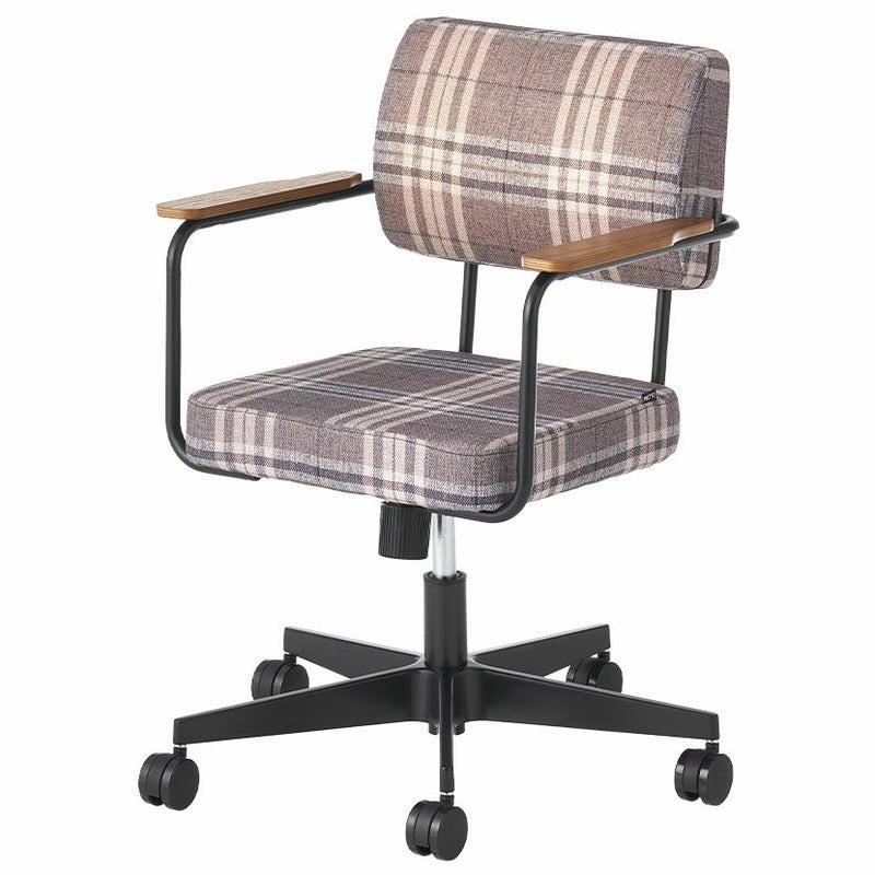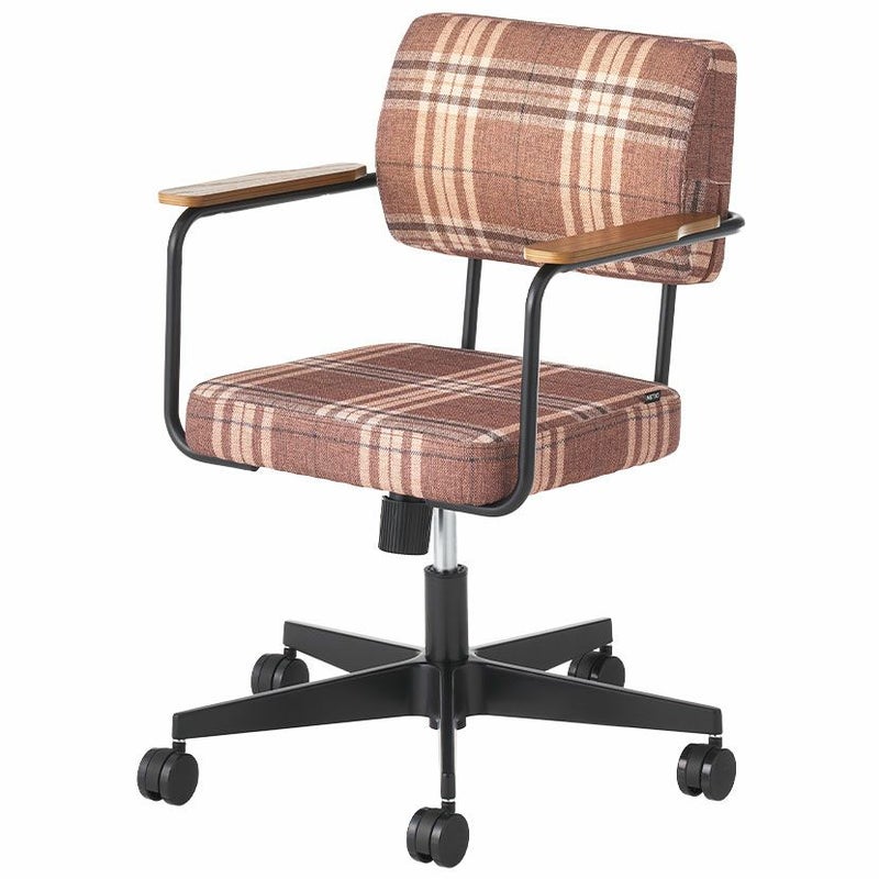 座面と背もたれの張地にタータンチェック柄のクロス素材を使用した親しみのあるデザイン。