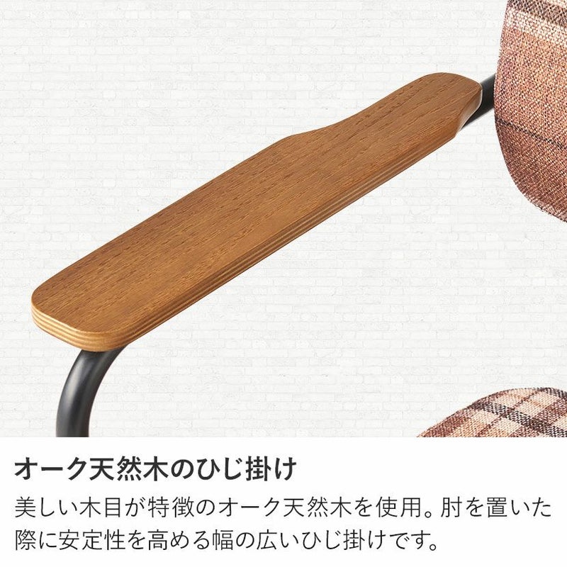 美しい木目が特徴のオーク天然木を使用。肘を置いた際に安定性を高める幅の広いひじ掛けです。