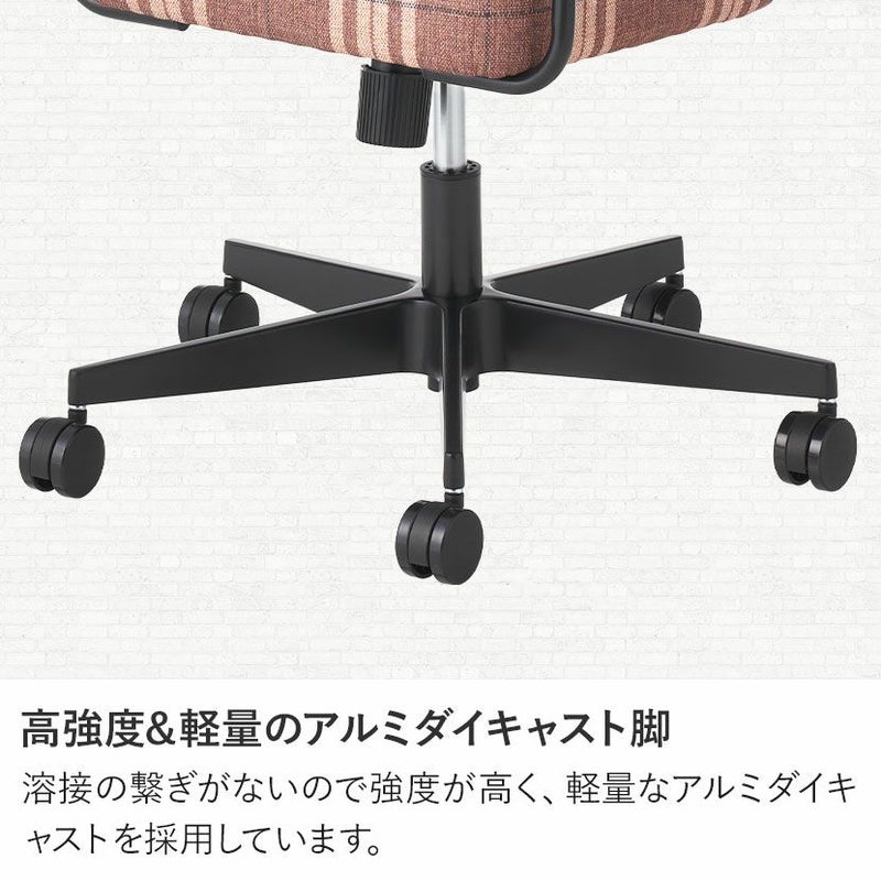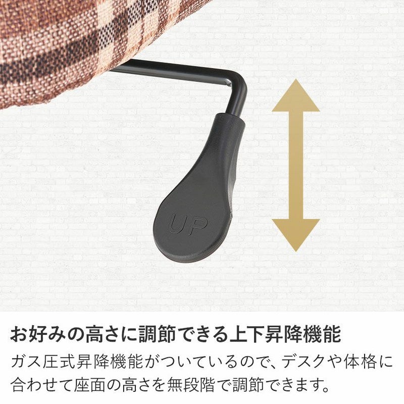 ガス圧式昇降機能がついているので、デスクや体格に合わせて座面の高さを無段階で調節できます。