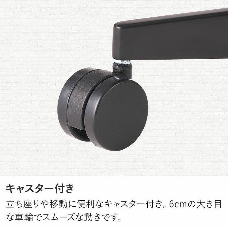 立ち座りや移動に便利なキャスター付き。6cmの大き目な車輪でスムーズな動きです。
