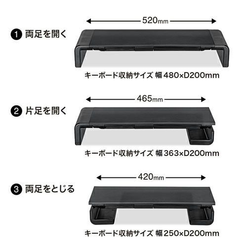 ●左右のフレームを折りたたむことで3段階での横幅の調整ができ、レイアウト変更に柔軟に対応できます。