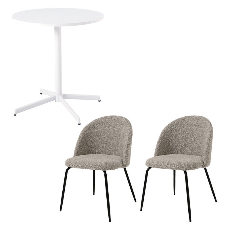 表面に凹凸のある豊かな表情が特徴のブークレ生地に、引き締め役となるブラックスチールの脚部を組み合わせました。