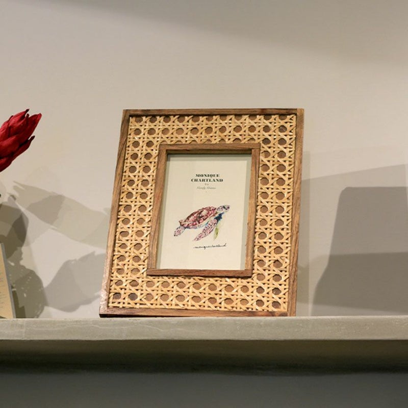 幅19.1cm フォトフレーム ラタン02 チークウッド フォトスタンド おしゃれ 写真立て ディスプレイ 雑貨 ハンドメイド インテリア リビング 玄関 ブラウン 完成品