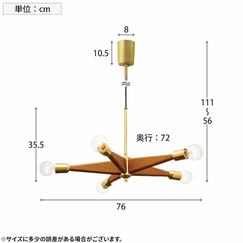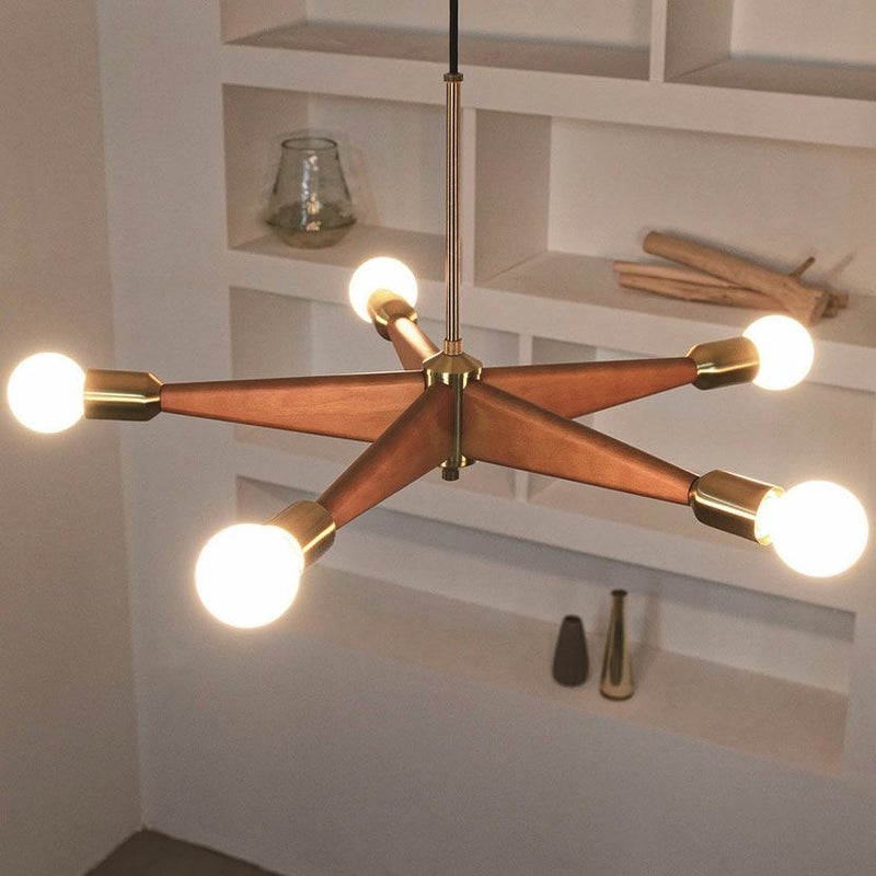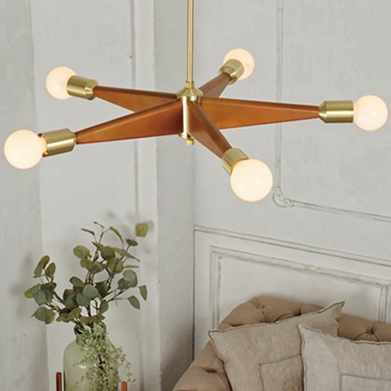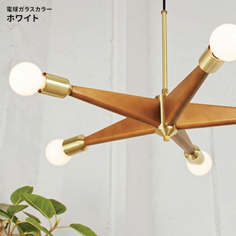 5つの白熱電球がそれぞれの方向を照らし、お部屋全体に均一で温かみのある光を届けます。